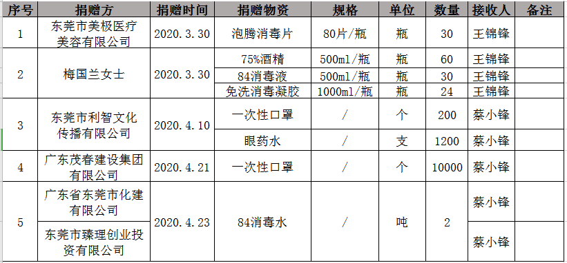 为规范捐送物资的管理使用,接受全校师生及社会监督,现将第一批防疫物资捐送情况公示如下: