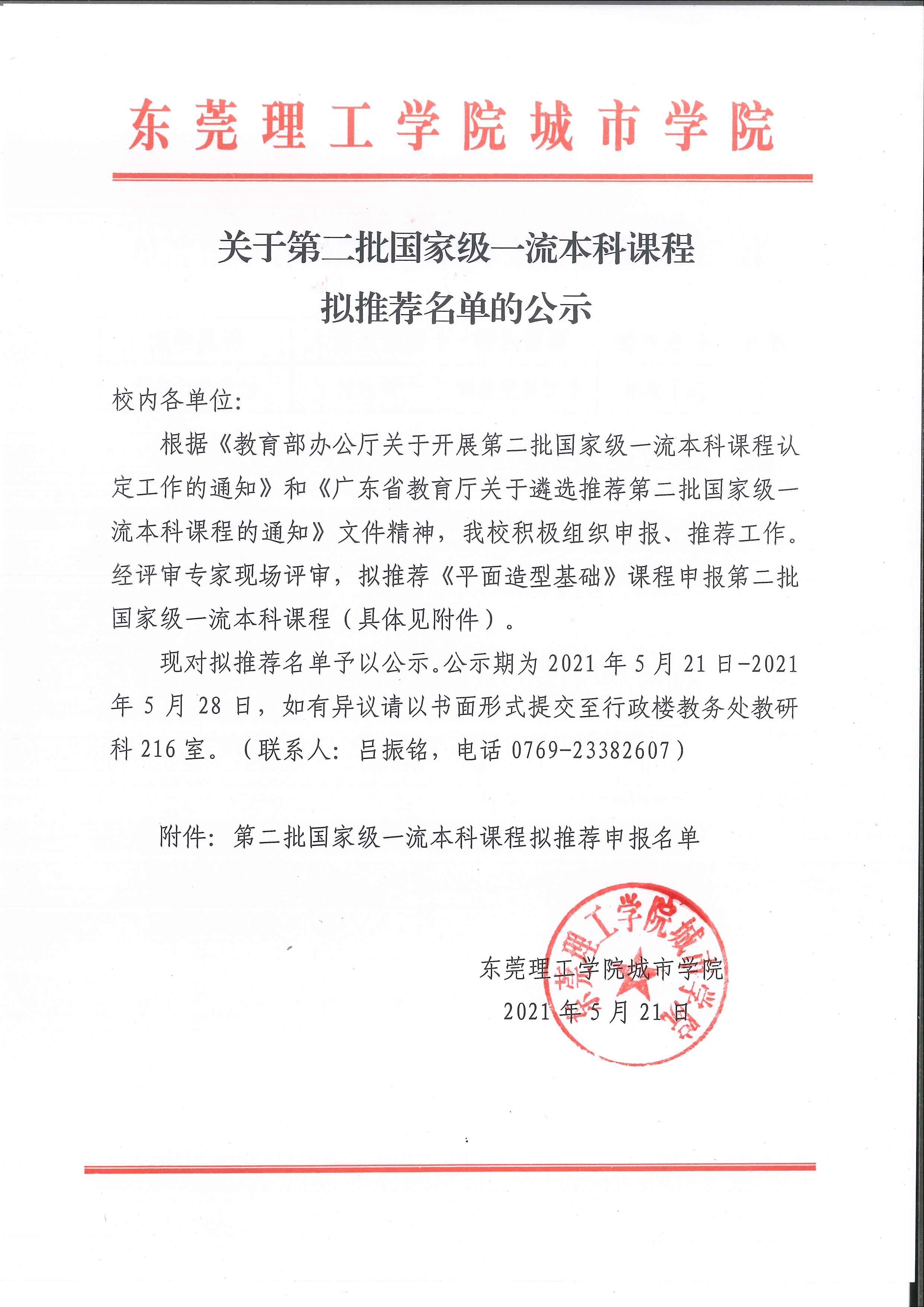 Beat365中文官方网站城市学院关于第二批国家级一流本科课程拟推荐名单的公示