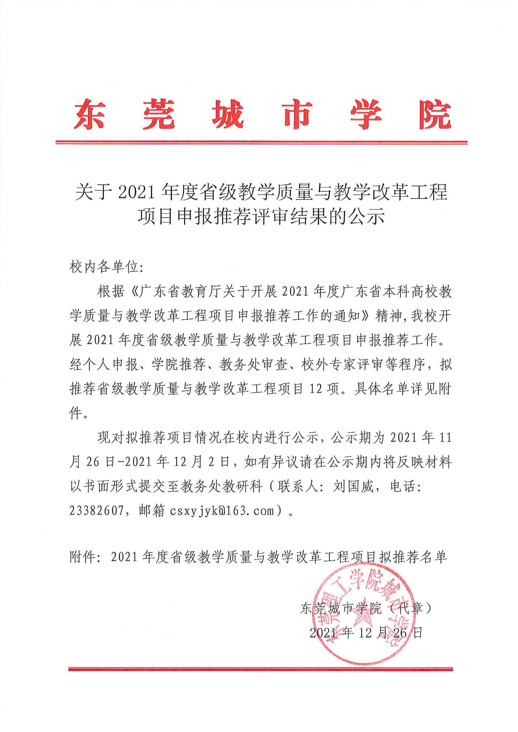 关于2021年省级一流专业建设点拟推荐申报专业的公示
