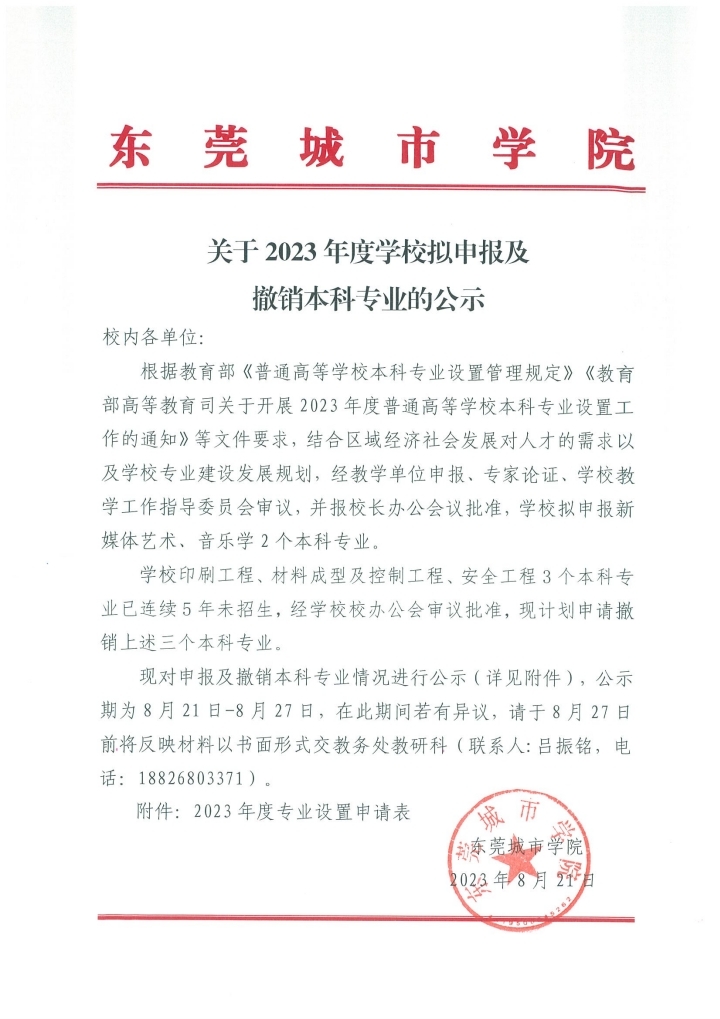 关于2023年度学校拟申报及撤销本科专业的公示