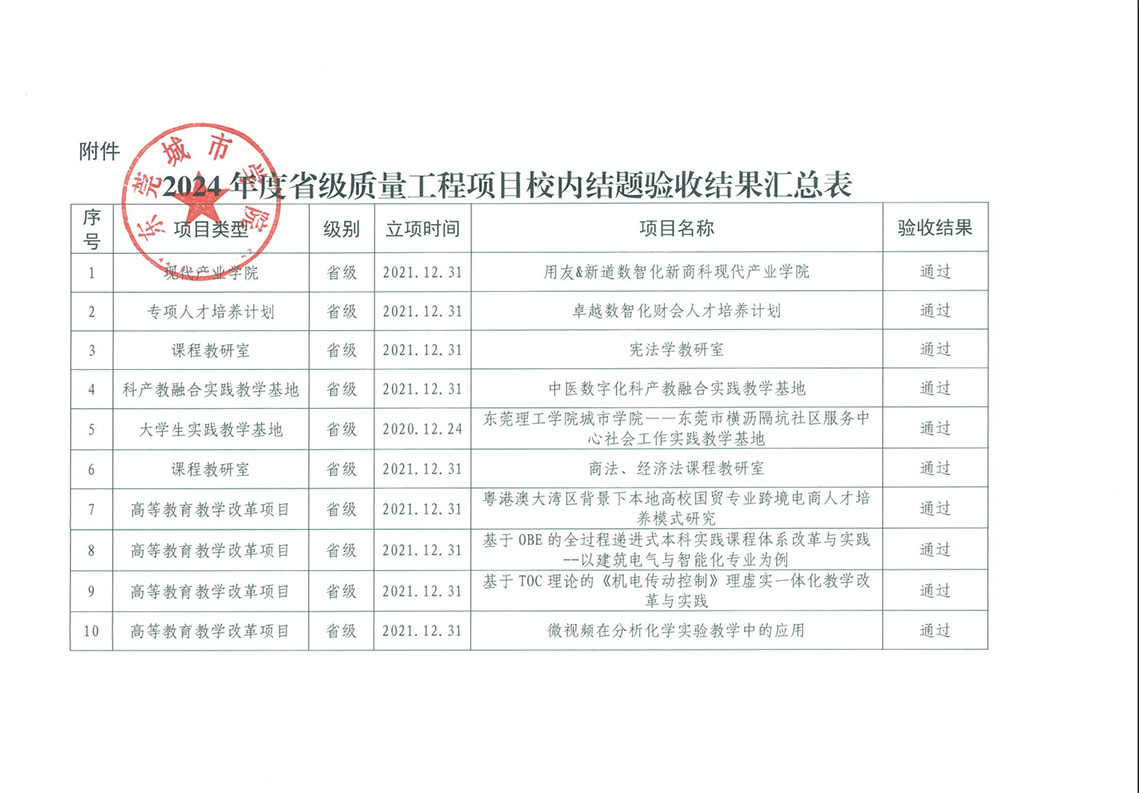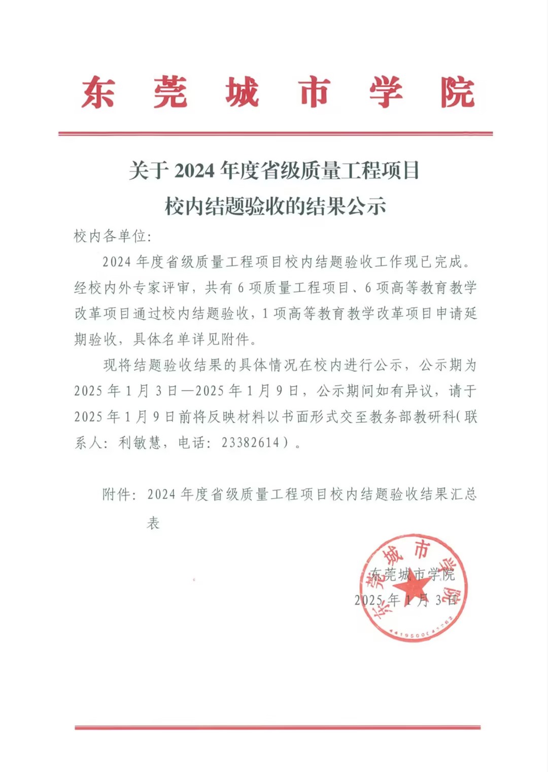 关于2024年度省级质量工程项目校内结题验收的结果公示